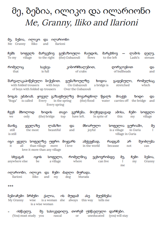 HypLern - Learn Georgian with Me, Grandma, Iliko and Ilarion - Interlinear PDF, Epub, plus MP3s