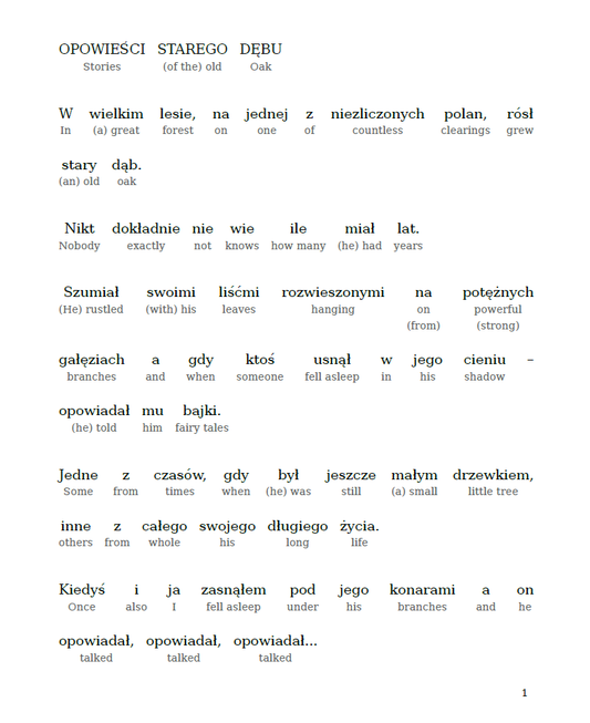 HypLern - Learn Polish with Beginner Stories - Interlinear PDF and separate Audio