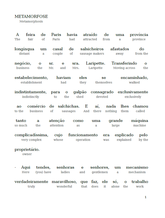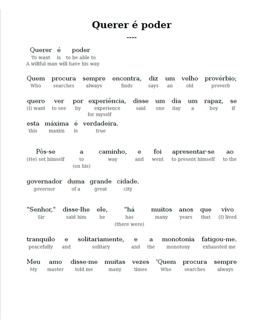 HypLern - Learn Portuguese with Short Stories - Interlinear PDF, Epub, Mobi and Audio