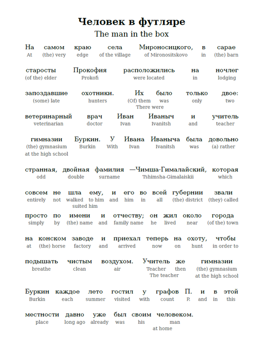 HypLern - Learn Russian with Chekhov's Ionych- Interlinear PDF, Epub, Mobi and audio